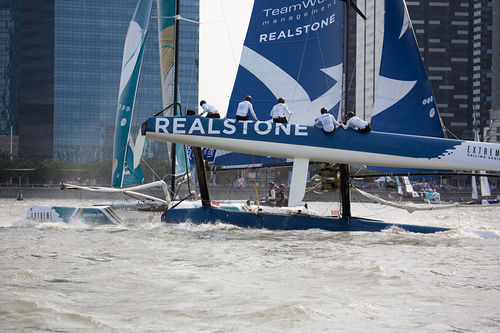 Realstone tras su buena actuación de ayer sufría una colisión con Oman Air, que pudo escucharse en los alrededores de la bahía. Jerome Clerc, patrón del Realstone explicó lo que sucedió: “Oman Air trataba de arribar a nuestra espalda y, bajo presión, que no siempre es fácil de manejar, Rob (Greenhalgh ) no lograba ejecutar su maniobra y nos golpeó en la parte posterior de la embarcación. Chocaron contra el timón y nos provocaron un gran agujero, empezamos a hundirnos pero empujamos nosotros mismos para terminar la carrera”.