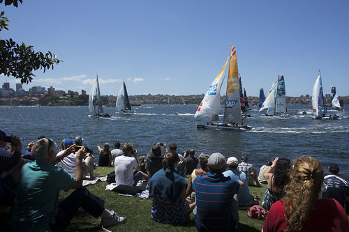 Con una brisa de unos 15 nudos y un cielo soleado, las condiciones de competición fueron inmejorables y los miles de espectadores congregados en el puerto de Sidney fueron testigos no solo de la mejor competición del año sino además del vuelco del barco australiano GAC Pindar en la sexta manga del día, tras una colisión con Realteam que se llevó las derivas de los australianos por delante y les hizo volcar.