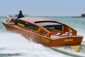 Gracias a la colaboración entre estas dos firmas, la Amore, la limusina acuática más famosa de Vizianello, a menudo elegida por las estrellas de Hollywood como medio de transporte en Venecia, disfrutará de una segunda juventud. Esta limusina acuática de nueve metros de eslora, cuya silueta sigue fiel a los elegantes taxis acuáticos de caoba, ha sido equipada con un motor híbrido con propulsión eléctrica y diésel controlado por un sistema de integración Simrad Command capaz de monitorizar el motor dotérmico y el eléctrico.