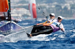 Sí, nuestro lado es babor, Flo trimando y yo conduciendo. A día de hoy la idea, que siempre puede cambiar, es que en Cagliari compitamos Quentin Delapierre con Jason Saunders en estribor y nosotros dos en babor.