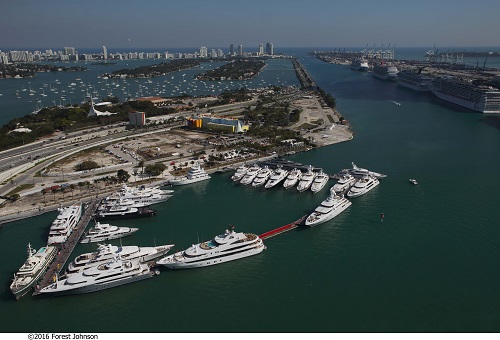 Por segundo año, Yachts Miami Beach incluyó una exhibición de súper yates en Island Gardens Deep Harbour en Watson Island, que acomodó yates de hasta de 500 pies de eslora. Este “show dentro del show,” que es solo por invitación y conocido como Super Yacht Miami, presentó 28 súper yates este año.