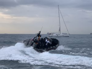 Realizamos una prueba con una semirrígida DSB de aluminio de 8 m de eslora, sin representación en nuestro país con un montaje doble de los Neander DTorque 111 de 50 Hp. Una embarcación claramente orientada a los trabajo portuarios, de rescate y, probablemente para algunos, como insistió el representante de Neander, para salir de pesca. El caso es que probamos la embarcación con 6 personas a bordo, con marejadilla y viento racheado.