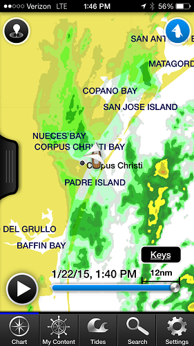 Sea planeando una ruta tranquilamente desde casa, o mientras se navega por aguas abiertas, el acceso a datos sobre el tiempo y las condiciones meteorológicas es un aspecto fundamental a tener en cuenta. La App. BlueChart® Mobile 2.0 incluye información sobre temperaturas, punto de rocío, dirección y velocidad del viento, nubosidad… que el usuario puede consultar de forma superpuesta a los gráficos.