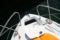 El acceso a proa por las bandas, aun siendo lógicamente estrecho, no reviste peligro ya que el marco del parabrisas actúa como pasamanos/asidero quedándonos ya luego bajo la protección de los grandes candeleros y sus guardamancebos de las amuras.
