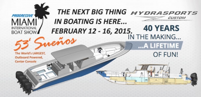 La presentación de la lancha de consola central más grande del mundo — HydraSports Custom 53´ Sueños. Un barco que como el resto de la gama tendrá una construcción limitada –no más de 12 al año- para su distribución mundial.