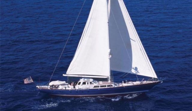 El TOTO 110´ Palmer Johnson Sailing Yacht, uno de los yates de navegación más grandes que jamás se haya presentado en esta exposición náutica (anclado en Strictly Sail en el Miamarina de Bayside).