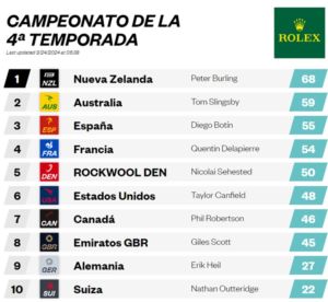 “Los Gallos”, cuartos en Christchurch, suben otro escalón en la clasificación general y ya son terceros, con 55 puntos, uno más que Francia y cinco por delante de Rockwool Denmark. Además, el incidente de los australianos con la boya les ha supuesto una penalización de 12 puntos en el evento, que se traduce en 8 puntos menos en el campeonato. Por su parte, los daneses han sido penalizados con 8 puntos en el Gran Premio y 4 en la temporada.