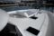 Nos llama la atención el trabajo realizado para alcanzar una habitabilidad excepcional. A la gran disponibilidad de espacio abierto desaprovechado en donde se halla el solario de proa, se añade el set de la B&Q en su gran plataforma de baño hidráulica. Desde aquí se acede a un garaje que tiene por objeto la estiba de grandes y medianos pertrechos. A ello hay que sumar la gran bañera con una mesa fija en forma de luna y una auténtica terraza donde poner tumbonas sobre el voladizo que protege la dicha bañera y en el que también existe un banco desde donde perder la vista en el horizonte. Los pasillos laterales son amplios y profundos al paso.