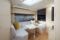 Contiguamente se muestra una cocina completa en su máximo esplendor, dotada de horno, vitrocerámica, nevera vertical y multitud de cajones “soft” y armarios para la estiba de alimento y menaje. No llama poderosamente la atención el suelo de toda la estancia que es la recreación de una estética “parket” oscuro muy elegante y que aquí escapa del tejido moqueta que impera y tapa dicho suelo en toda la acomodación.