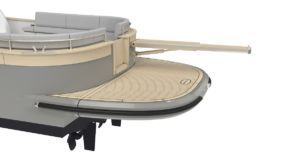 En ambas versiones, la proa muestra un excelente espacio alternativo donde disfrutar de la navegación o del sol, estirados o erguidos apoyados en el roof de la sobreestructura. Por cierto la proa luce un excelente paso por la roda al estar totalmente oculto el molinete de fondeo, facilitando el embarque/desembarque hacia el pantalán en caso de atracar en flecha.