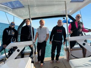 Mientras la tripulación preparaba el barco, los cuatro diseñadores —los ingenieros Lorenzo Giovannozzi y Guillaume Petit, y los arquitectos navales Gabriel Treddenti y Umberto Felci— se movían por cubierta con una mezcla de emoción y atención absoluta. Eran ellos quienes iban a probar el barco que imaginaron, desarrollaron y modelaron durante miles de horas de estudio, simulaciones y conversaciones con los armadores, cuyo deseo era claro: vivir a bordo y navegar el mundo non-stop.