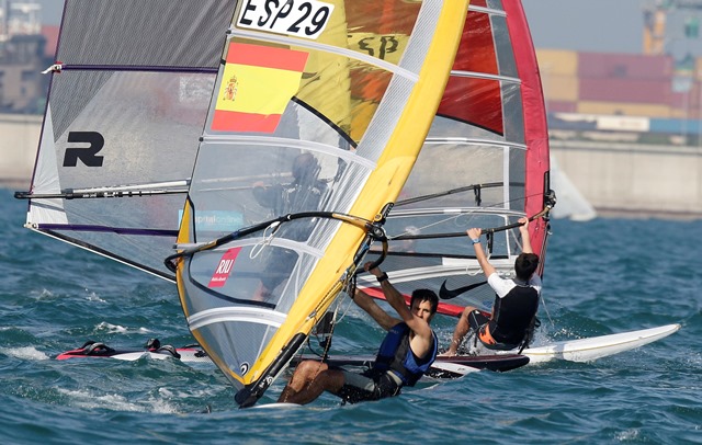 El suizo Mateo Sanz y el español Sergi Escandell se la juegan mañana en RS:X. La diferencia entre ambos es de sólo 6 puntos. El andaluz Juan Manuel Moreno no cede terreno (4-5-3) y aunque se queda algo lejos (a 6 del líder y 5 del segundo) puede sacar provecho en la última jornada de la ‘pelea’ del suizo y catalán. Moreno está a un puntos del segundo y siete del líder.