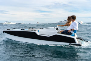 Según el astillero, el casco brinda a los pasajeros una navegación seca, incluso a alta velocidad y con algo de mar. Es sin duda, un divertido runabout eléctrico y una embarcación eficiente como auxiliar para un yate convencional.