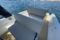 En proa se ha dispuesto un lugar donde tomar el aperitivo con una mesa en símil madera muy convincente de altura graduable. En ella se pueden sentar hasta 5 personas bien acomodadas con un respaldo mullido, por supuesto, no muy alto. Bajo los bancos, cerrándose como la letra griega “omega” existe espacio adicional para la estiba. El espacio por las bandas que dan acceso al puesto de gobierno y a la popa, son amplios al paso. La altura que ofrece el top rígido ofrece una buena franquicia a aquellos considerado altos a partir del 1,80. Hacia popa encontramos dos lugares para sentarse: el del puesto de gobierno, comedido y realizado en carbono, que es para dos, se abate el respaldo avante creando otro lugar para dos sentados y orientados hacia popa.