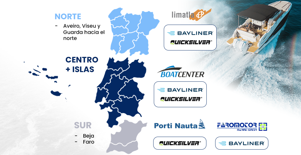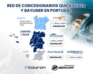 La nueva organización divide la responsabilidad comercial en tres zonas claramente definidas —norte, centro (incluidas las islas) y sur—, lo que permitirá ofrecer una mejor atención al cliente y un mejor servicio de estas marcas en todo el territorio portugués. Tras un proceso de evaluación detallado, Touron ha designado a cuatro concesionarios que asumirán la distribución de las marcas Quicksilver y Bayliner en sus respectivas áreas: