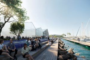 El proyecto integra arquitectura, espacios verdes y lámina de agua en una secuencia continua de espacios públicos. A lo largo del recorrido, se alternan tramos de sombra, áreas de estancia, miradores y puntos de actividad que abren visuales hacia la dársena y el horizonte marítimo, convirtiendo el mar en un elemento activo de la experiencia urbana y no solo en un fondo escénico.