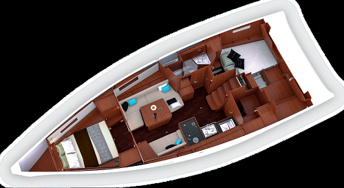 Personalizable en numerosos detalles, el interior del Oceanis 41.1 ofrece en cualquier configuración líneas aireadas y armoniosas. Podremos elegir de las maderas, los teñidos y materiales de forrados, también del número de camarotes y aseos. En este sentido, el Oceanis 41.1 da un paso adelante en lo que se refiere a las posibilidades de adaptación con tripulaciones y formas de vida a bordo muy diferentes. El camarote del armador ofrece en cuanto a él, volúmenes dignos de un 45’ que permiten especialmente una orientación de la cabecera de la cama hacia proa.